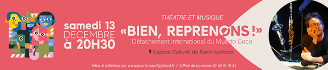 Mar. 9 déc. à 20 h 30 - Le Champilambart - Vallet / Jeu. 11 déc. à 19 h 30 - Carré d’argent - Pont-Château / Sam. 13 déc. à 20 h 30 - Cap Nort- Nort-sur-Erdre / Mar. 16 déc. à 20 h - Quai des Arts - Pornichet / Jeu. 18 déc. à 20 h 30 - Théâtre de Verre - Châteaubriant
